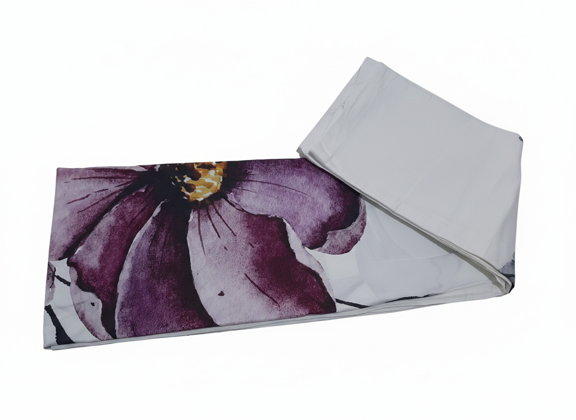 Sanatsal Çiçek Deseni: Nevresimin bir yüzündeki devasa lila çiçek figürleri, yatak odanıza romantik ve modern bir derinlik katar.